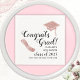 Create unique graduation napkins with saying Congrats Grad, year and name templates decorated with graduate's cap and diploma illustrations in rose gold colors. Typography is in black color on this design.