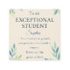 Featuring a soft parchment-style background with watercolor leaves and gold accents, this card delivers a heartfelt message: “To an EXCEPTIONAL STUDENT – Your hard work, growth, and positivity have made an impact. Keep up the great effort.”