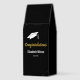 This black and white graduation roasted coffee box has a white graduate's cap above the text. The display text says 'Congratulations' in faux gold script. You can personalize your gift with the graduate's name in white text. You can even add the year the student is graduating under the name.