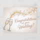 An elegant and celebratory image featuring a beautiful greeting card design. It shows two champagne flutes toasting, accompanied by a festive stream of golden glitter and delicate petals. The text "Congratulations on your Wedding!" is written in a graceful, flowing script.