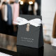 Perfect for packaging jewelry, small gifts or promotional items, these chic soft black boxes feature a white ribbon and a faux copper foil pineapple illustration. Personalize with two lines of custom text on the front, and additional custom text on the back. Example shown for a boutique.