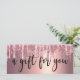 This gorgeous gift certificate design features faux pink & copper rose gold dripping glitter metallic texture and elegant calligraphy font.