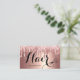 This gorgeous hair stylist business card design features faux copper rose gold dripping glitter metallic texture, scissors and elegant calligraphy font.