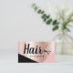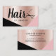 Modern business card for hairdressers or hairstylist with scissors, faux rose gold & pink & black geometric background and elegant calligraphy font.