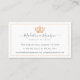 Elegant and regal faux copper royal floral & foliage crown logo business card design. We've designed this beautiful crown logo. A modern faux copper royal crown is created with flowing leaves and floral elements to create this beautiful crown logo. s simple minimal faux copper frame allows for the crown logo to standout and take notice. Customize with your company name and tagline. The reverse side is designed in a clean and minimal style . You can customize the text size, font, colors and background color to suit your own personal preference. All illustrations and logo contained in our royal crown logo & business card design are hand-drawn original artwork by Moodthology.