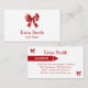Refined Design: The bold red bow symbolizes passion, elegance, and attention to detail, while the crisp white background ensures your contact information stands out. The minimal yet eye-catching layout radiates professionalism and charm.