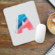 Mouse Pad with custom logo. Letter A on colorful background. Add your name.