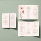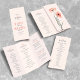 These simple elegant three-fold wedding programs are designed for an elaborate wedding with coral watercolor poppies in shades of coral pink & gray. The brochure sections include the wedding party, the wedding exchange of vows schedule, phone and camera instructions, a thank you note, and the reception schedule.