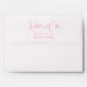 This wedding envelope features a minimalist design with elegant, flowing cursive typography for the names and straightforward serif text for the address. The muted coral pink color palette adds a touch of romance and sophistication, making it perfect for formal events or announcements. With ample negative space around the text, the layout emphasizes clarity and readability while maintaining an understated elegance. Ideal for couples looking to add a personal yet refined touch to their wedding stationery, this design is both modern and timeless.