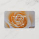 This coral colored business card is simple, elegant and enhanced with bright white type, and a pretty coral colored rose. It has rounded corners and is shown on the standard matte paper; however, the premium pearl paper is my favourite for this design. Contact us at prettyfancyinvites@gmail.com, if you need help customizing this card or if you need additional coordinating items.