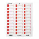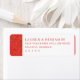 This return address label features a minimalist design with a clean, modern aesthetic. The layout is vertically oriented, showcasing a vibrant coral red border with intricate swirling patterns that add depth and movement. Central text is presented in an elegant serif font, offering customizable options for personalization while maintaining clarity and formality. The overall mood is sophisticated and inviting, making it perfect for formal invitations or announcements.