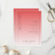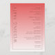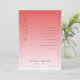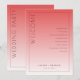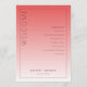 This wedding program features a minimalist and elegant design with a vertical layout, divided into two sections by a gradient color transition from deep coral pink to lighter peach-pink. The left side prominently displays the word "WELCOME" in bold, capitalized serif font, while the right section lists ceremony events in a structured, centered format using ample spacing for readability. Customizable placeholders allow for personalization with names and dates at the bottom center, enhancing its versatility. The clean, modern aesthetic utilizes negative space effectively, creating a sophisticated and formal mood suitable for an important ceremonial occasion.