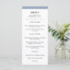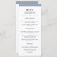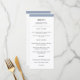 This elegant, stylish wedding menu features chic black text on a white background, bordered in dusty blue.