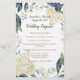 Elegant Cream and Blue Watercolor Flower Wedding decor features cream white roses, daisies and carnations with blue and green leaves and berries. Beautiful watercolor painted background for a classy and sophisticated classic theme. Lovely for a summer, floral garden flower or blue and white theme.