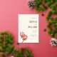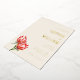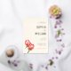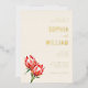 This elegant wedding invitation features a soft cream background with gold and warm floral tones, creating a sophisticated yet inviting atmosphere. The design includes realistic illustrations of protea flowers in rich reds and oranges, adding a vibrant touch to the minimalistic layout. The typography combines script and serif fonts for a refined hierarchy, while ample negative space ensures clarity and elegance. Perfect for couples seeking a formal and celebratory mood, this invitation is ideal for marking the special occasion of a wedding.