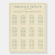 This elegant wedding seating chart features a clean, minimalist layout with a light cream background and black serif typography. The design is organized into twelve columns, each labeled for different tables, providing clear guidance for guests to find their seats. Its sophisticated style, characterized by ample negative space and formal font choices, creates a professional yet inviting atmosphere perfect for weddings or formal events. Customizable guest name fields allow for personalization, making it an ideal choice for couples seeking both functionality and aesthetic appeal in their event planning.