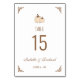 An elegant white table card number with two creamy pumpkins with brown gold lettering .