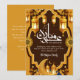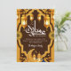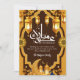A luxurious Eid Al-Fitr greeting card featuring intricate golden lanterns, a majestic crescent moon, and floral ornaments on a rich chocolate brown and gold background. Perfect for sending warm blessings to family and friends.