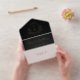 Elegant wedding invitation with your monogram initials inside a wedding crest, your first names, "Reception to follow" and "Rsvp" showcased in a chic script, your invitation details in classic serif typography, and a white tear-away RSVP postcard, all rendered in your choice of genuine gold, silver or rose gold foil on black and white backgrounds. If desired, you can adjust the size of the script for longer or shorter names by editing in the design tool.