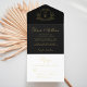 Elegant Crest Monogram Script Black Wedding All In One Invitation