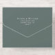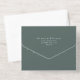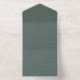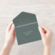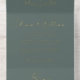 Elegant sage green all-in-one wedding invitation that features your monogram initials inside a classic wedding crest, your names, "Reception to follow" and "Rsvp" showcased in a chic calligraphy script, your invitation details in simple lettering, and a tear-away RSVP response postcard, all rendered in your choice of genuine gold, silver or rose gold foil. If desired, you can adjust the size of the script for longer or shorter names by editing in the design tool.