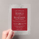 Invite your loved ones to share in your joy on your wedding day with these gorgeous acrylic invitations. The stylish red & silver design features your names prominently displayed in block letters while the introduction and other notes feature fancy script calligraphy with swashes on the ends of the letters. The text is displayed on a deep crimson red colored background inside of a sliver-gray frame. The outside border of the invite is transparent acrylic with ornate silver faux foil decorations in the corners. Elegant, classy, sophisticated and beautiful, these wedding invitations are sure to leave a lasting impression.