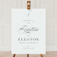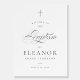 Elegant Cross Calligraphy Baptism Welcome Sign features a delicate modern cross, paired with modern type and beautiful calligraphy script.
