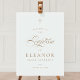 Gold Elegant Cross Calligraphy Baptism Welcome Sign features a delicate modern cross, paired with modern type and beautiful calligraphy script.
