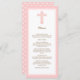 An elegant cross designed with swirling curls and fancy fleur de lis patterns, coordinates perfectly with our baptism, communion and confirmation invitations. Each line can be customized for your menu. Pretty pink cross design is available in matching stickers and postage as well.
