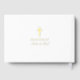 This elegant real foil guestbook makes a luxurious keepsake for a bride and groom and is a beautiful way for wedding guests to express their appreciation. The front cover and back cover of the guestbook feature the cross in real metallic foil. There is real metallic foil text on the front cover, on the spine and on the back cover of the guestbook; the text is easy to personalize online before ordering.