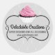 © 2020 Socialite Designs Inc. Elegant bakery packaging seal has an elegant cupcake designs and a doodle banner frame. The background has an elegant gray pattern. Use these stickers to seal your baked goods boxes or pouches.