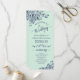This beautiful wedding program features an elegant mint green and navy blue design with lacy curls and swirls in the corners. The titles are written in fancy script calligraphy, and there is space for your ceremony and wedding party details, as well as a short thank you for your guests. Wonderful way to welcome your friends and family to your wedding celebration.