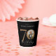 Elegant Custom 70th Birthday Party Paper Cups. Celebrate a milestone birthday with our Black and Gold Simple Elegant invitation, perfect for adding a touch of sophistication to your special day. This customizable design features a sleek black background adorned with elegant gold accents, creating a timeless and classy look. Personalize it further with a custom photo to make your invitation truly unique and memorable. Ideal for those who appreciate a refined aesthetic, this invitation sets the tone for a celebration that will be cherished for years to come.