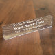 Enhance your workspace with this elegant custom acrylic nameplate. Featuring a sleek, transparent design with crisp white engraving, this personalized desk accessory adds a professional and sophisticated touch to any office or business setting. Perfect for showcasing your name, title, or company with style and clarity.