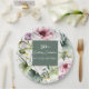 Pretty floral party plates that will help you celebrate a 50th birthday in style. The florals are multi colored with emphasis on green and pink in a watercolor style with a white script. The plates can be fully personalized to reflect any age or occasion and honoree.