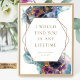 Elegant "I Would Find You In Any Lifetime" love quote sign with a beautiful watercolor celestial theme. Design with exquisite watercolor stains in cosmic galaxy hues with dainty stars cascading behind a golden geometrical hexagon framing the quote. Ability to customize and change all the text sections . Watercolor stains in a blend of blue, navy, teal, turquoise, purple, fuchsia, and golden hues. "IMPORTANT NOTE: This sign is in premium poster paper style, easy to frame or glue/staple to inexpensive MDF or foam board for display. If you prefer this sign prepared for display already on a foam board, please follow these easy steps: on this sign product page, scroll up, until you see a section with images called "Transfer design to a product". Use the arrow on the images to look at all the options, until you reach the "Foam Boards" option. Click on it, and it will transfer the design into a foam board for you. Initially, sometimes it transfers the design into a very big foam board size, nevertheless, you can change the sign into the size you need on the product page and even see how it looks already in a stand. When you add this design to your shopping cart, it will tell you the back side is in black. Don't worry about it, as this only means that the back of the sign will be white. If you need help, please send me a message and I'll get back to you as soon as possible".Part of our "Mystic Garden Celestial" collection with a variety of coordinating products available. Dimensions of sign in demo photo with stand: 18" x 24"