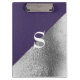 Elegant Custom Monogram Metallic Purple Silver Clipboard