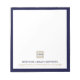 Stay organized in style with our Elegant Custom Notepad with Navy Blue Frame. This notepad features your company's logo, name, address, and contact information framed in a sophisticated navy blue border around a crisp white background. Whether you're jotting down important notes, messages, or to-do lists, this notepad exudes professionalism and attention to detail. It's a versatile addition to your office supplies, perfect for meetings, memos, or promotional giveaways. Elevate your brand's image with this tailored notepad that combines function and elegance.