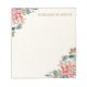 Beautiful pink vintage floral and greenery on cream-colored custom notepad. Personalized with your name in a modern serif font,.