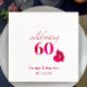 Celebrate a 60th Wedding Anniversary with these elegant personalized napkins. Customize them with the couples name and anniversary date. I created this original floral script from a photo I took here in Switzerland. I love taking photos of flowers on my walks. The number 60 and word Celebrating both have the floral pink red design of the rose flower. The simple modern design is breathtaking. This would make a great addition to the party table decoration for a diamond 60th anniversary party. It pairs well with the stemless wine glasses. It would make a lovely personal gift for your parents or grandparents as they celebrate their life together. Add the couples names. Add the anniversary date.You can also remove the flower if desired.