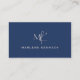 Elegant Custom Silver Monogram Navy Blue Business Card