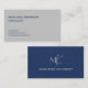 Elegant Custom Silver Monogram Navy Blue Business Card