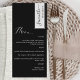 Why spend in place cards and menu cards when you can have an elegant All-in-one elegant Menu personalized with each guest name! Contemporary, simple and elegant design with beautiful white textured stripe with guest name in modern hand written calligraphy in black. Back in black. NOTE: please an individual order for each menu by adding guest name into menu, add menu into shopping cart; then come back to menu, add second guest name, add menu to shopping cart...continue with this process with all guest names on your list. For short first guest names, add with your keyboard spacebar a few empty "spaces" before name in order to center name. Design also available in black and gold. Part of our "Wedding and Event Products in Black" collection with a variety of coordinating products available.