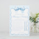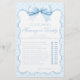 Sophisticated classic "Guess who? Mommy or Daddy" game designed for a baby boy shower, adorned with a charming pastel blue bow, ribbon frame, and a whimsical polka dot pattern in the background. Engage your guests with this delightful game, perfect for adding fun and excitement to your celebration while creating cherished memories.