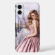 Elegant Cute Girl near Eiffel Tower, Paris,Custom Case-Mate iPhone Case