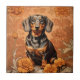 Elegant Dachshund And Marigolds Ceramic Tile