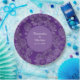 Purple Wedding products feature elegant daisies with a 3D-like appearance and a translucent background to showcase your preferred color. The middle section displays a solid circle with the names of the couple and their wedding date on the front. The back has the design only. Customize the color of the background when you Edit it.
