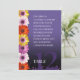 Add style to your wedding reception with this floral-themed table seating chart, which lets guests find their table. Features elegant white lettering, garlands of colorful African daisies, and lavender purple confetti set on a violet purple to black background. Customize with names of the attendees and table number.