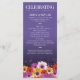 Add a touch of elegance to your wedding day with this floral-themed program, which features the wedding service and wedding party in elegant white lettering with lavender purple confetti and colorful African daisies on a violet purple to black background. Customize with names of the bride and groom, venue location, reception date, service details, and wedding party.