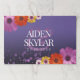 Make the dining experience of your special day truly memorable with these floral-themed wedding paper placemats, which feature elegant white lettering with lavender purple confetti and garlands of colorful African daisies on a violet purple to black background. Customize with the newlyweds' names and wedding date.
